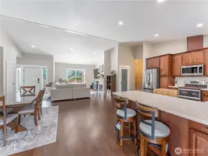 Built in 2018, this turn-key home offers the perfect blend of comfort, style, and privacy. 3 bdrms, 2.25 baths, and 2,024 sq. ft. of thoughtfully designed living space. Sitting on a .37-acre lot, tucked away at the end of a quiet cul-de-sac, you’ll find this freshly painted interior w/vaulted living room and cozy propane fireplace. LVP flooring in main living areas and halls and a spacious primary suite with large tiled shower and tile floors. The open layout is ideal for everyday living as well as entertaining. Step outside to enjoy the covered deck, fenced rear yard, garden areas! An oversized driveway, RV parking and close proximity to Three Lakes Golf Course make this home ideal!