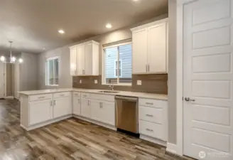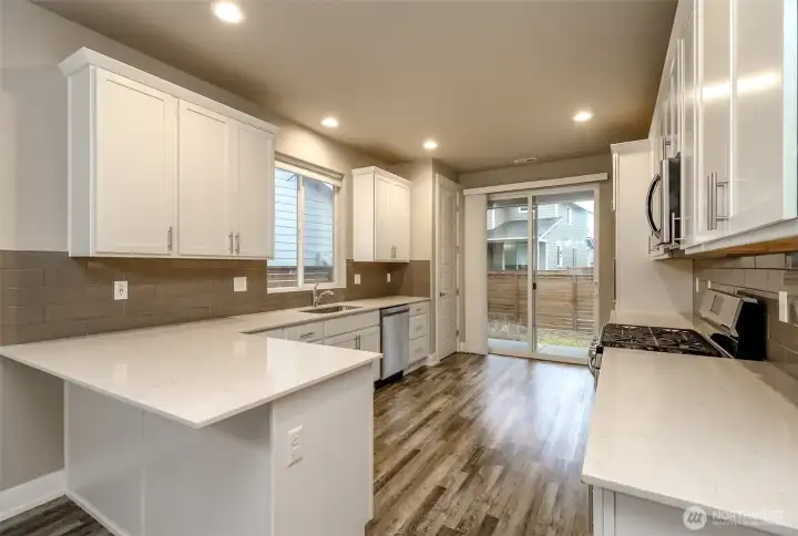 An inviting front porch welcomes you into an open entry and a stunning vaulted great room filled with natural light. The thoughtfully designed kitchen features a peninsula bar, while the adjacent dining area offers an ideal setting for intimate meals or entertaining. This well-planned three-bedroom layout provides comfort and functionality, making everyday living effortless. Enjoy hosting guests on the covered outdoor patio or unwind in the private primary suite highlighted by vaulted ceilings. A fully fenced backyard adds privacy and versatility. Ideally located directly across from a community park and just minutes from miles of scenic walking trails, this home offers a perfect balance of comfort, convenience, and outdoor lifestyle.