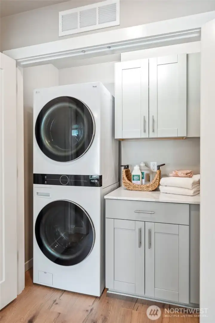 Welcome to Aberdour Landing, a new community in Bothell offering refined living and modern style. This spacious 4 bdrm, 3.5-bth home features a large entry-level bedroom and full bath and a generous laundry room with built-in cabinetry. The heart of the home is the entertainment-sized kitchen, complete with a walk-in pantry, expansive island, and upscale finishes perfect for hosting. Large windows throughout fill the home with natural light. Enjoy added touches like a cozy fireplace, balcony heaters, stair lighting, and Ring doorbell. Lot 17 is an end unit that includes a car charger outlet and laminate flooring throughout. Finished in Transitional Color scheme. Community is subject to a site registration policy.