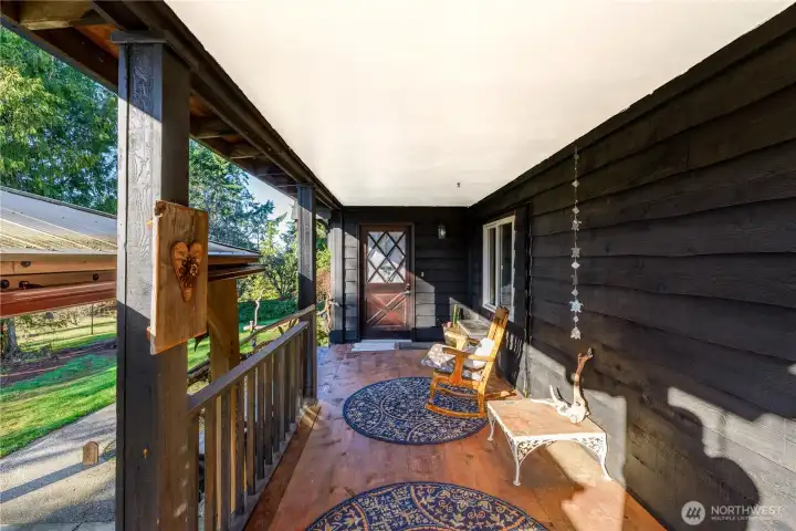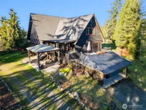 Great style, privacy & natural beauty from this rural hideaway on 2+ acres of beautiful land. Recently updated w/gorgeous materials, including Merbau hardwood flooring from Indonesia, live edge wood counters in kitchen & baths, beautiful copper sinks, ductless heat pumps, new H2O heater, new cabinets w/natural wood pulls & more. The property features a creek that flows into a small pond, stunning mountain views, and an orchard comprising 5 cherry trees, 4 apple trees, as well as walnut & plum trees. Outbuilding that would be a fun sleepover spot, including a woodstove plus a hot house for your green thumb. The entire backyard is fenced for pets. Great spaces to sit & enjoy the outdoors, including a Pergola & covered-open decks. A warm living room area greets you as you enter that is open to the kitchen area & another family room. Kitchen is equipped with tile floors,stunning wood counters built from wood from this property. Also on main level is a BR, full bath w/live edge wood counter, copper sink, new soaking tub & walk-in tile shower plus an Infrared sauna that conveys. Upstairs you'll find a large open BR w/slider out to incredible covered deck area, including artful railing built with curved sticks from the property. Also up is another BR that doubles as a gym or office & another full bath w/another live-edge counter & copper sink, plus a bidet. Below the main level is a large shop and carport. Served by PUD water & conveniently located between Sequim & PA.