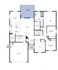The 1805 square foot Pacific is the entertainer’s dream home. Under the vaulted ceilings, the living room is sweeping, and an optional covered patio, just off the generous dining room, invites relaxation outdoors. The open kitchen offers a wealth of counter, serving and eating space and includes a bar area and optional built-in desk. The spacious main suite sits under vaulted ceilings and boasts a luxury bathroom with an individual shower adjoining the large closet.