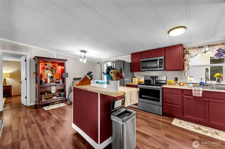 Charming 1.6-acre Manf home offering a blend of modern upgrades and serene country living. Updates feature laminate & tile flooring, a fully remodeled kitchen with new appliances & updated bathrooms. The property includes a partial fence, 30 AMP electric service for a camper, & various entertainment spots like a bonfire pit & hammock swing area. Gardening enthusiasts will appreciate the mature grape vines, cherry, and plum trees, along with nutrient-rich soil and multiple water sources. The detached 1100 sf shop provides ample space for tinkering and storage. The picturesque setting with rolling hills, pastures, and a red barn offers the tranquility of ranch living w/o the responsibilities. Conveniently located just 10 mins from town!