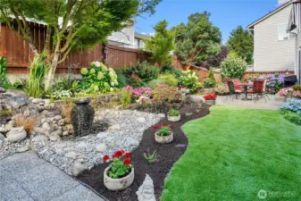 Welcome to this beautifully designed, immaculately maintained two-story home in the gated community of Augusta, offering comfort & style throughout. Featuring 3 bedrooms & 2.5 baths, the home includes a main-floor primary suite with a private bath & spacious walk-in closet. Soaring ceilings, built-in shelving, & abundant natural light enhance the open living spaces. Upstairs, a dedicated office area provides an ideal work-from-home setup. Modern upgrades include new lighting, stainless steel appliances, updated LVP flooring, a new furnace, new hot water tank, and A/C, along with a lifetime transferable roof warranty. Step outside to a beautifully landscaped backyard, where a serene fountain creates a peaceful, private oasis.