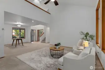 Beautifully updated 1,894 sq ft two-story home located in the sought-after McCormick Woods golf coarse community! Enjoy miles of trails, playgrounds, basketball courts & tennis courts within the neighborhood. This UPDATED home features a highly desirable floor plan with vaulted ceilings, creating a spacious feel throughout. Recent upgrades include NEW CARPET, BEAUTIFUL refinished light oak floors, fresh interior paint & newer roof. Primary Bedroom and office on the MAIN LEVEL. Optional 4th bedroom or flex room upstairs. 3 Car Garage & huge covered patio off the back. Situated near shopping, highways, hospitals, ferries & more. This home offers a fantastic opportunity to enjoy space, updates & location with community amenities all in one.