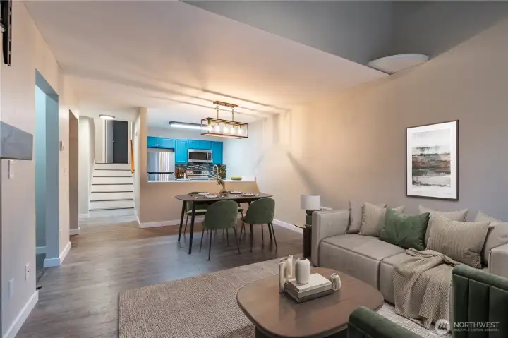 Move-in ready in River Ridge, a multi-level townhome community. This unit boasts NEW vinyl plank flooring, trim & paint throughout. Vaulted ceilings, skylights & generous windows create a light filled, flowing floor plan. The main level features an updated kitchen w/Quartz tops, vibrant cabinets & breakfast bar open to dining area & spacious living room w/cozy fireplace & access to your private balcony. The primary suite provides its own updated bath & spacious 2nd bedroom w/updated adjacent bath. Turn key w/all appliances. Carport in front of unit + 1 parking reserved spot. Community clubhouse & gazebo overlooking the Green River. Strong HOA & dues cover W/S/G. Close to downtown Auburn, schools, Hwy 167, 18, I-5, Bus & Sounder Stations.