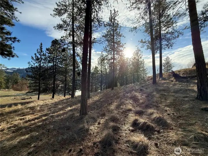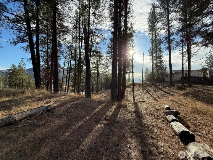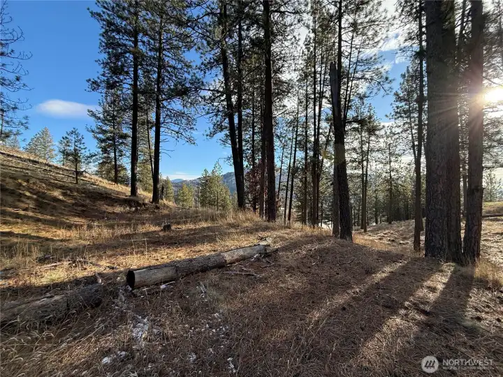 What a beautiful, private large lot in town! Over half an acre with large mature Ponderosa pine, leveled building site nestled in the trees with a view of Mt. Gibraltar. Relatively easy access.