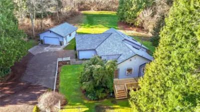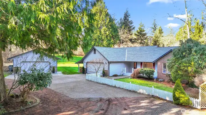 Tucked away down a private, meandering driveway, this beautifully maintained Arlington rambler offers the perfect balance of privacy & convenience with NO HOA. Just minutes from Smokey Point, this unique property feels like a true country retreat. Home features an 896 sq ft SHOP on 2.9 private acres just a short walk to Lake Ki! The home features 3 bedrooms, 2 bathrooms, plus a bonus room ideal for a 4th bedroom or home office. Inside, enjoy high ceilings and oversized windows that flood the home with natural light and frame peaceful views of the serene, easy-maintenance private yard. Home is truly move-in ready. Recent improvements include a NEW ROOF, fresh interior / exterior paint, NEW laminate flooring throughout, & a NEW entertainment-sized cedar deck overlooking the tranquil grounds—an absolute must-see. The crawl space & attic have been completely renovated, offering added peace of mind. Additional features include a 2-car garage, ample parking, and endless space for hobbies, toys, or future possibilities.