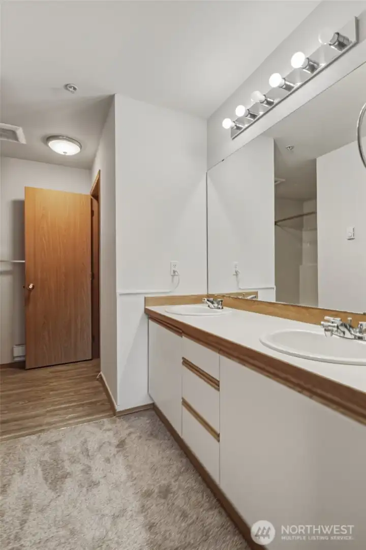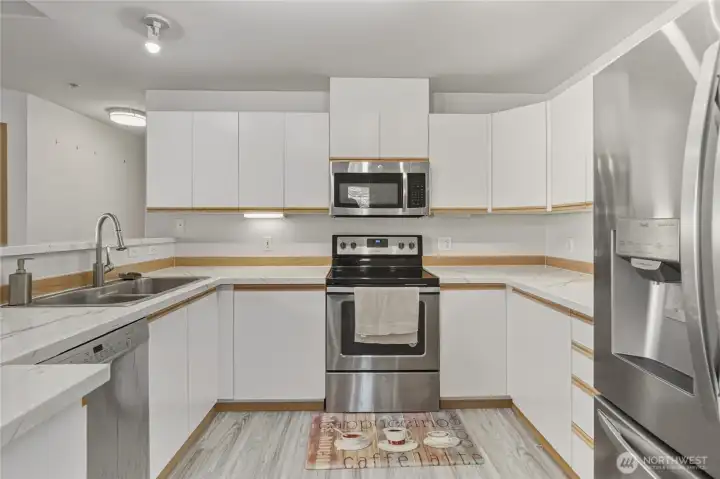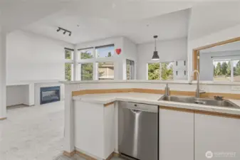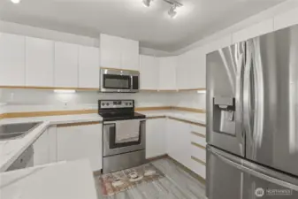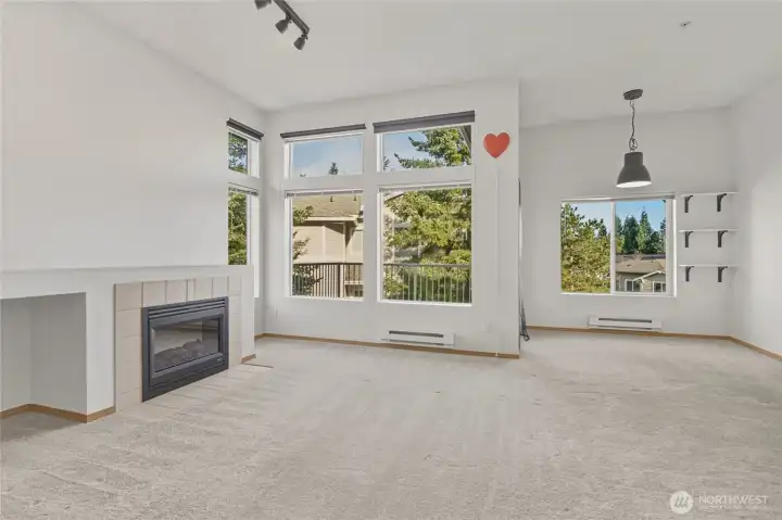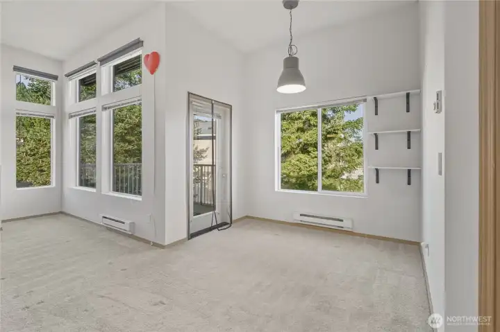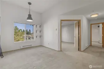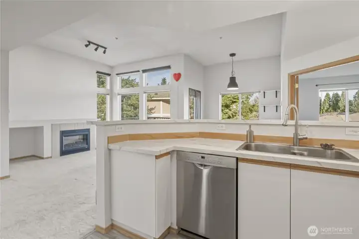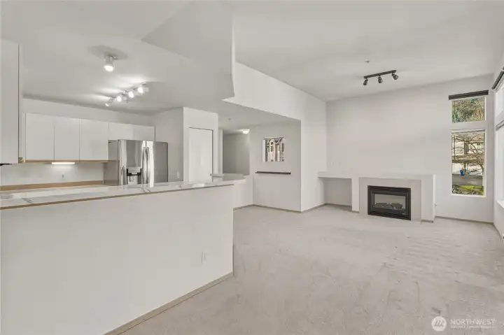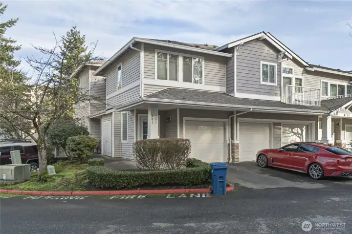 Step into bright, airy living at Terrace of Parkview in this 2 bedroom, 2 bath townhome with vaulted ceilings and oversized windows bringing in abundant natural light. Large open great room with dining space, double doors open to your second bedroom or use it as an office. Full size laundry and full guest bathroom. Primary bedroom has walk-in closet and huge private ensuite bathroom with two sinks. Private one car garage with extra depth for storage. Quick access to I-5 for easy commute north or south, also close to Kent Station, Southcenter shopping and dining a hop and skip up the road.