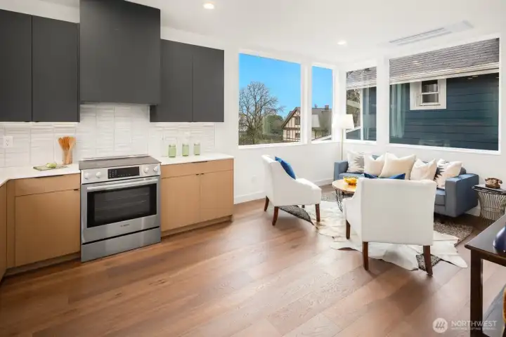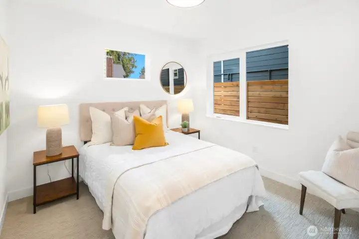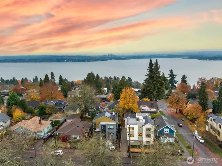 Enjoy modern living in this boutique 3-home community in the heart of Madrona—one of Seattle’s most beloved, walkable neighborhoods, known for its cafés, local shops, parks, and easy access to the lake. 806B is a thoughtfully designed 2-bedroom ADU with bright, efficient living spaces and a well-appointed kitchen. Entry level has an ensuite bedroom and access to a fully fenced outdoor space. Your lofty primary suite tops off the design. Take in sweeping views of the lake, Bellevue city skyline, and the Cascades from the rooftop deck, perfect for morning coffee or sunset gatherings. A dedicated off-street parking pad adds everyday ease. Elevated details include radiant-heated bathroom flooring and recessed mini-splits.