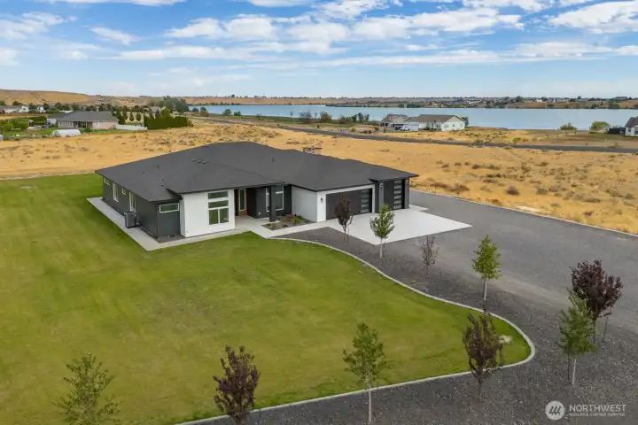 Experience luxury living in this exquisite 3,810sqft new construction, custom home on a 2.23 acre lot w/ partial stunning Lake view. The open concept layout accentuated by shy of 12’ ceiling in great rm & kitchen w/ an abundance of natural light. Offering grand foyer, formal dining rm, office, guest suite w/ 3/4 bath, bonus rm which can be 5th bedroom, mud rm. Chef's kitchen boast custom cabinets, quartz countertop & walk-in Butler's pantry. Engineered hardwood throughout, A/C, irrigation sprinkler sys, central vacuum & all bathrooms w/ heated elegant tile flooring. Primary suite w/luxurious bathroom offers spa like oasis w/soaking tub, full tile walk through shower. Minutes to many amenities & plenty of room for boat, RV & your dream shop!