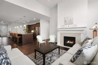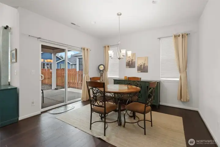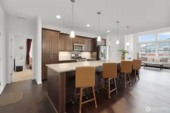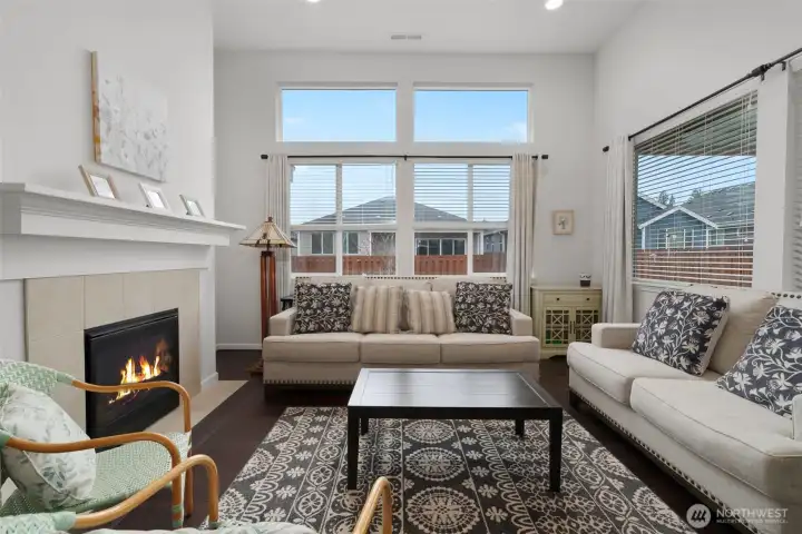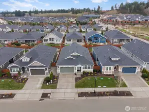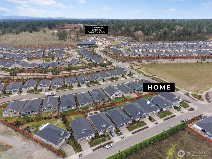 Embrace modern elegance in this coveted 55+ Ovation Community. This 2 bedroom plus den home embodies luxury, sophistication with easy, practical living. High ceilings & clerestory windows provide a light and airy feel. Entertain guests in the gourmet kitchen with large granite counter, expansive storage & SS appliances. Kitchen opens to inviting formal dining and living room. Engineered hardwood floors and gas fireplace add to a warm and inviting ambiance. Retreat to luxury primary suite with luxury bath. Fully fenced lot and covered patio. A community of friendly clubs and a place for great interactions. Just 2 blocks to the amazing lodge with entertainment spaces, pool, pickleball courts and much more. Monthly HOD provides access to all of the community facilities for your enjoyment. Front yard maintained by HOA. This home is not just a residence - it's a lifestyle.
