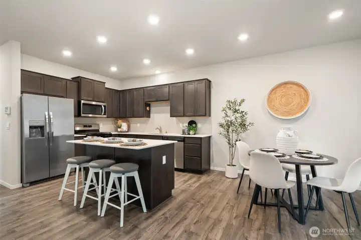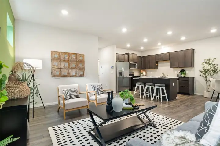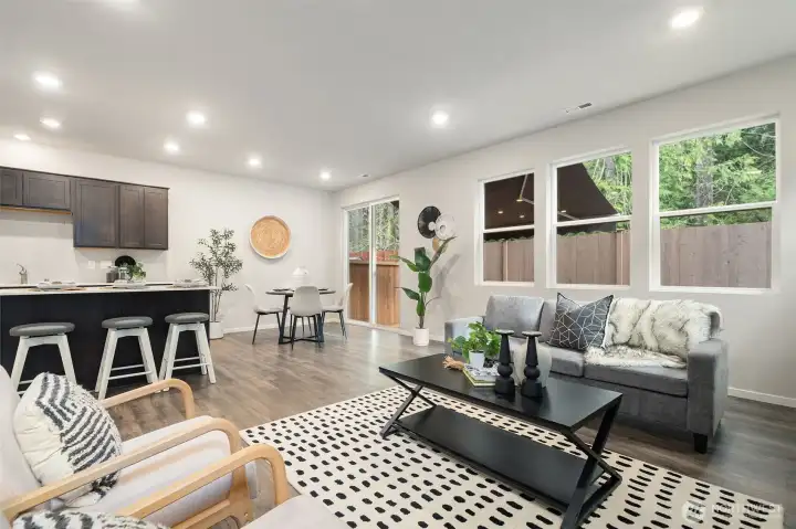 Centrally located with easy commute to PSNS, Bangor & Bremerton/Seattle Ferry. This turn key home is just 2 years old & has been impeccably cared for. Walking in you're welcomed to a open floor plan with a spacious family room/kitchen and dining area. A wall of windows and slider to the fenced back yard provide lots of natural light. The island kitchen is sure to be the hub of the home; room for guests to sit at the island while you visit & prepare a meal. Nice contrast between the shaker cabinetry & Corian countertops and custom tile backsplash. Upstairs the primary ensuite offers a tranquil space to relax and the loft area is perfect for a home office/playroom or? Low maintenance private fenced yard to keep your pets safe. See it today.
