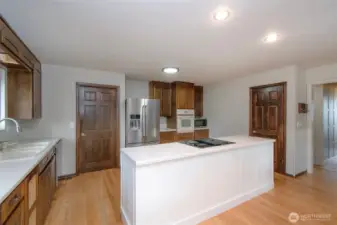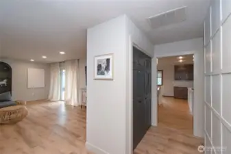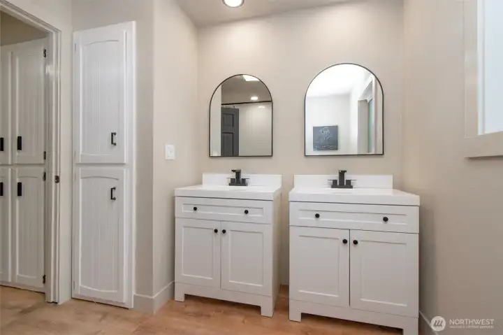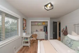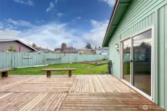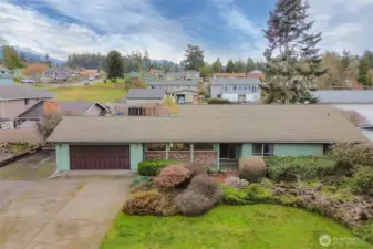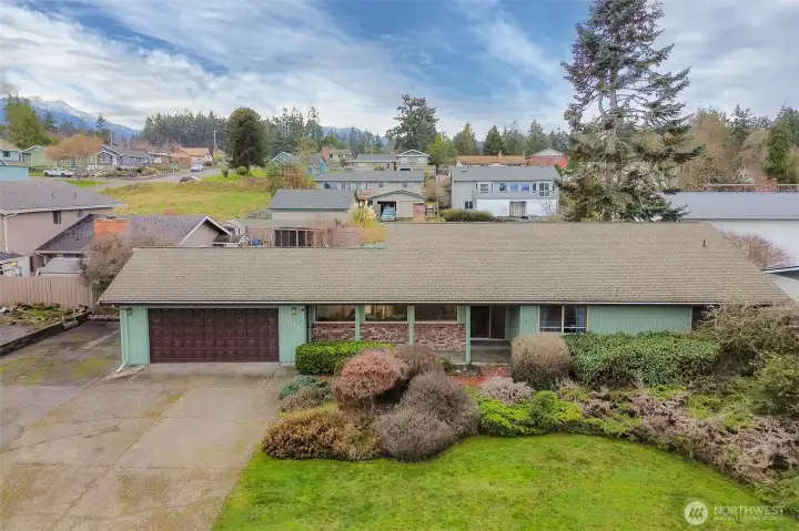 Refined and thoughtfully updated, this 3-bedroom, 2-bath west side Port Angeles home offers partial water & mountain views. Updated LVP flooring flows throughout, while the light-filled living room opens to a back deck and fully fenced yard, ideal for entertaining or quiet enjoyment. The kitchen & dining area feature warm hardwood floors, generous counter, storage space, and charming wood stove for added ambiance and heat. The primary suite includes an updated 3/4 bath. Two additional bedrooms are spacious and versatile, complemented by a beautifully remodeled main bath with double vanities, new tub, and tile shower surround. A two-car attached garage, alley access, raised garden beds, and a fruit tree complete this exceptional home.