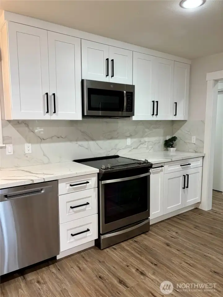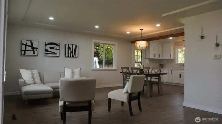 Charming and newly remodeled three-bedroom, one-bath home with modern updates throughout. Features include a brand-new roof, new windows, fresh interior paint, and durable vinyl plank flooring. The open-concept kitchen offers new cabinetry and flows seamlessly into the living space, perfect for everyday living and entertaining. Enjoy a spacious backyard ideal for gatherings, outdoor relaxation, or gardening. Conveniently located near restaurants, shopping centers, parks and everyday amenities, with easy access to I-5 for commuting. This move-in-ready home offers comfort, style, in a prime location!