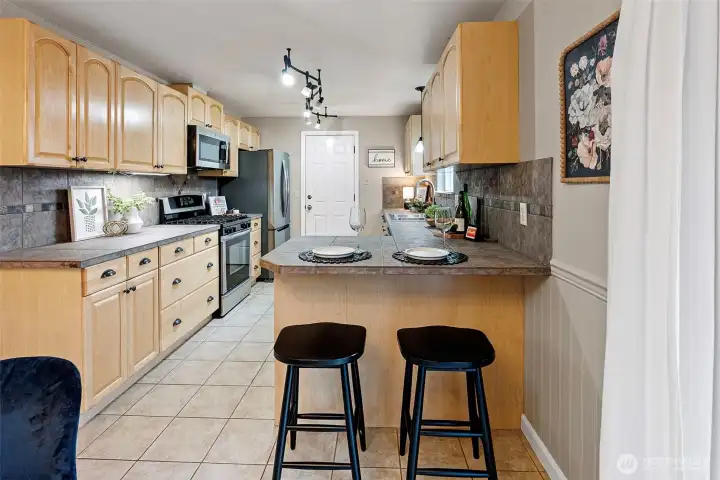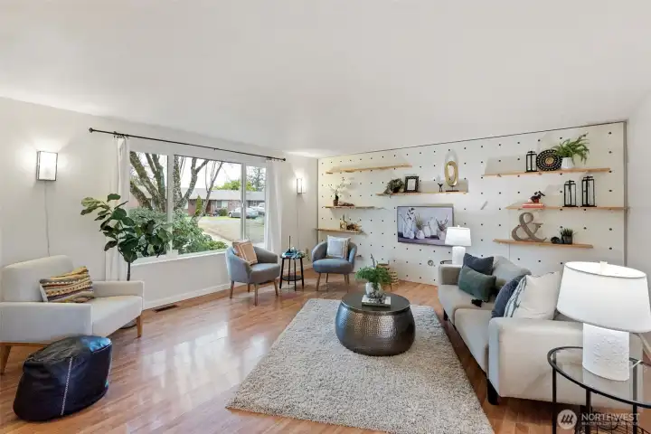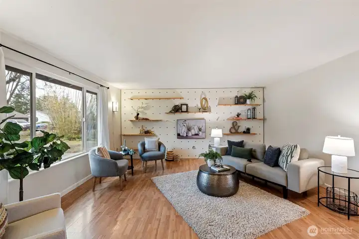 Charming, Move-In Ready & Radiating Pride of Ownership! This well-cared-for home truly shows the love it has received over the years. A welcoming covered front porch brings you into light & bright living spaces featuring hard surface flooring throughout. Spacious living rm w/peg board–style accent wall that adds both character & functional display space which flows seamlessly into the updated kitchen. Ample cabinetry generous counter space & a convenient breakfast bar open to dining area. Your new home includes 3 bedrooms + 1 bathroom, deep single car garage a spacious yard. Step outside to endless possibilities. Quite a gardener’s paradise, including a fig tree, 5 apple trees, productive blueberry bushes, ornamental plum, Kousa dogwood, white pine, Japanese maple, black bamboo, lilac, Oregon grape, arborvitae & vibrant seasonal plantings including rhododendrons, azaleas, roses, peonies, dahlias, rosemary & colorful hydrangeas. Gated access on both sides adds convenience. Don't miss the potential of the roof top deck over the detached shop & all the projects that can be had in the space. Don't wait!