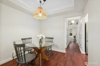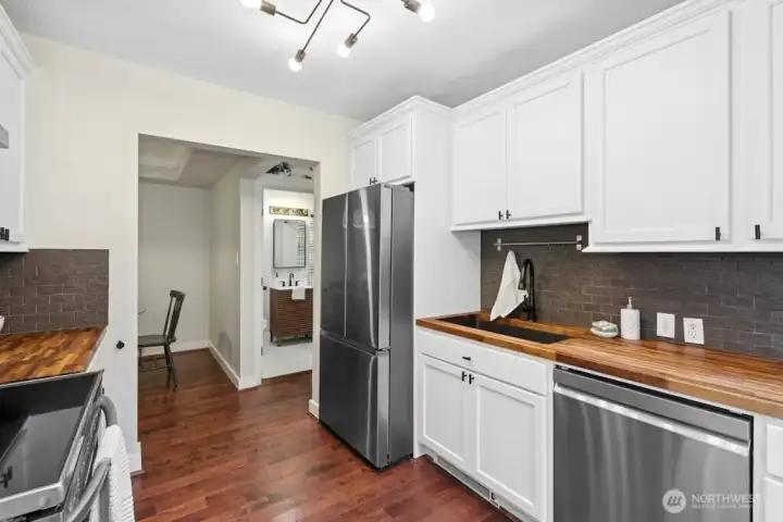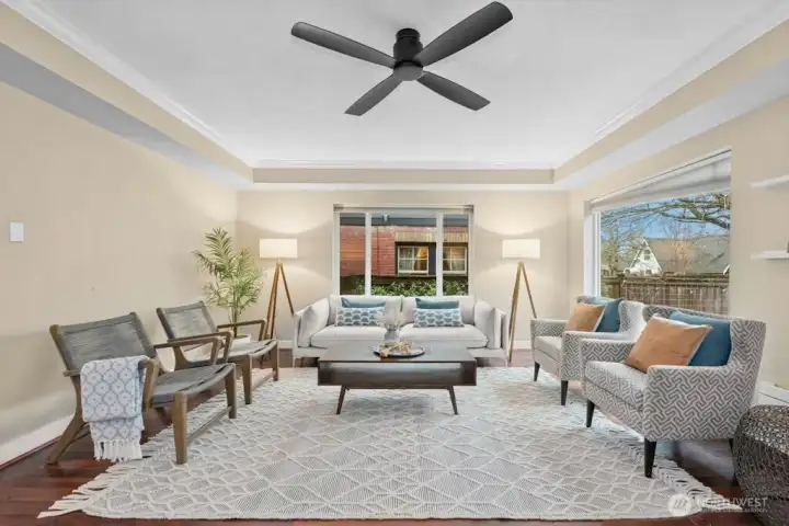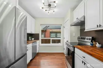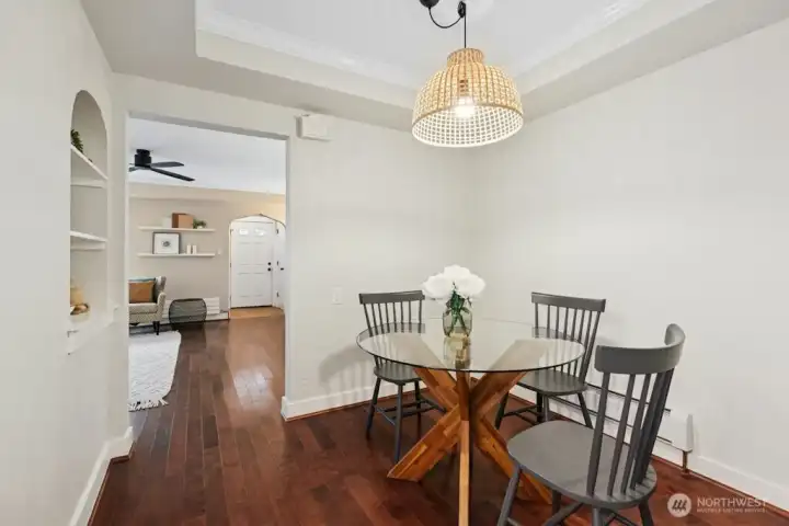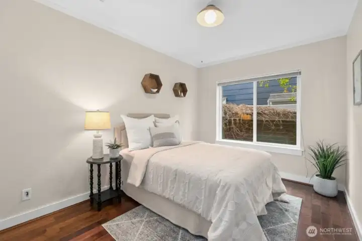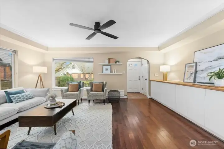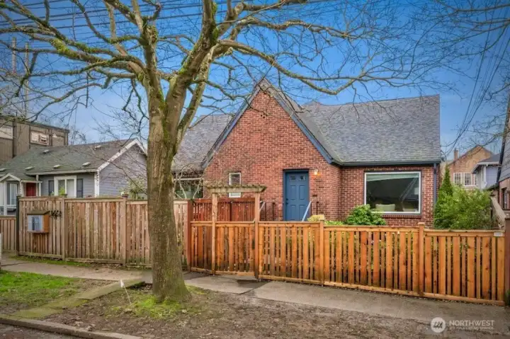 Brick Tudor-style attached residence blending timeless details with thoughtful updates. Step into a sun-filled main level with hardwood floors, coved ceilings, and classic arches that give the home its unmistakable charm. Charming living and dining room are spacious and inviting—perfect for everyday living and easy entertaining, while updates throughout keep it comfortable and move-in ready. The lower level adds laundry, storage, and flexible space, recently refreshed with fresh paint, updated flooring, and wainscoting. A fully fenced front yard with patio and garden space extends your living outdoors. Off-street parking, no HOA, and quick access to downtown make this one a rare mix of character and convenience. .