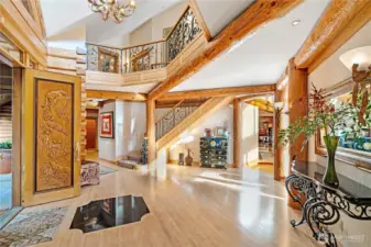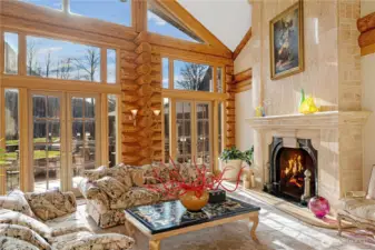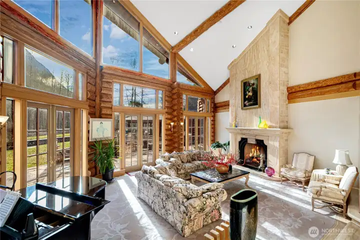 A truly unique, custom-crafted Canadian Red Cedar log home nestled on a breathtaking 36 acres of land with 800 feet of pristine riverfront. Panoramic views can be enjoyed from nearly every room. The grand entry welcomes you into an exceptional interior featuring travertine flooring and soaring ceilings. A generous kitchen offers a large island and plenty of space for gathering. Elegant marble and river-rock fireplaces add character and charm. The primary suite includes an expansive ensuite and a luxurious dressing room. Enjoy year-round swimming in the indoor pool. A gated entrance ensures privacy, making this property ideal as a private multi-home estate, event venue, or retreat destination.