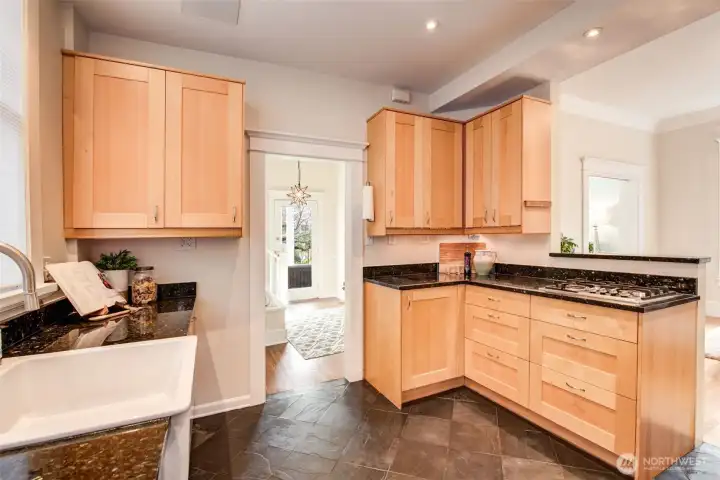 Gracefully positioned in the heart of Madrona, this classic 1901 Craftsman blends timeless architecture with an exceptional Seattle lifestyle. A welcoming covered front porch sets the tone, inviting quiet moments and effortless neighborhood connection. Inside, a spacious foyer with a built-in bench opens to a comfortable living room featuring a gas fireplace, flowing seamlessly into the dining room for refined everyday living and entertaining. The light-filled kitchen is appointed with birch cabinetry, granite countertops, stainless steel appliances, and heated slate flooring. A main-level bedroom opens to a rear deck and a serene backyard with garden space, creating an inviting private retreat. Upstairs, three spacious bedrooms with new carpeting are complemented by a full bath with heated tile floors. Abundant natural light fills the home throughout. Recent updates include a newer roof (2020) and heat pump (2022) providing central A/C. Freshly painted inside and out. A one-car garage with additional driveway parking adds everyday convenience. Ideally located just one block from the vibrant shops, restaurants, and cafés along 34th Avenue and only a half mile from Madrona Beach Park. With a Walk Score of 90, enjoy easy access to neighborhood favorites and nearby green spaces. An enduring residence in one of Seattle’s most sought-after enclaves.