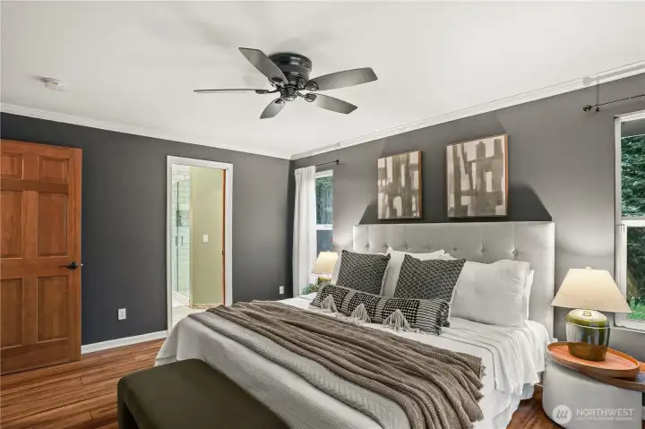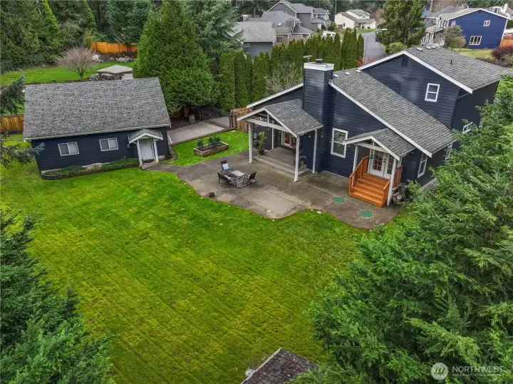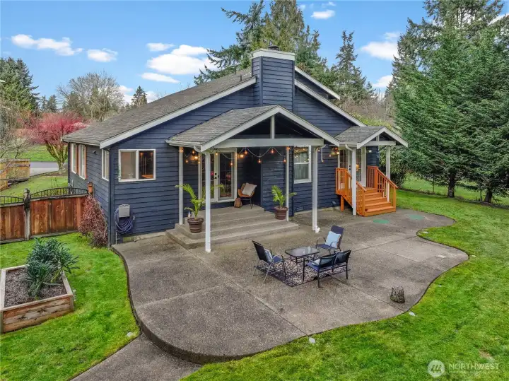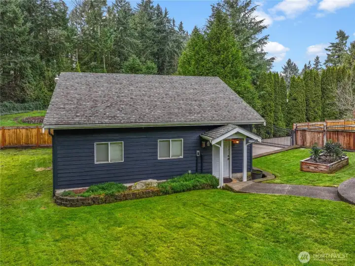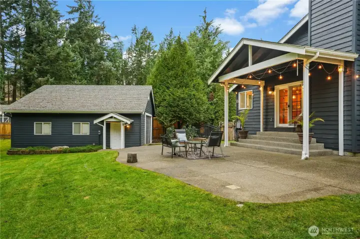 Located in a prime Gig Harbor setting, this thoughtfully designed 3 bedroom home offers a balance of comfort and privacy. All living spaces are conveniently arranged on the main floor, including the primary bedroom, which features French doors opening to the patio. Designed with entertaining in mind, the patios extend the living space outdoors and overlook a fully fenced, private backyard. Completing the property is a separate 900 sq ft shop and garage, providing ample space for storage, hobbies, vehicles, and RV parking.