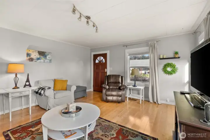 Welcome home to this spacious 2,048 sq ft property set on an impressive four-lot corner parcel, offering room to spread out both indoors and out. The main level features a generous living and dining area, functional kitchen, two bedrooms, full bathroom, and convenient laundry. Upstairs you’ll find an additional bedroom, bonus space, and a private primary suite. Select interior spaces showcase charming shiplap walls, adding warmth and character. Outside, enjoy manicured lawns, a fire pit for evenings under the stars, rear deck, and fenced garden area. A detached bonus space with a wood-burning stove is ideal for hobbies or gatherings. The property also includes a detached single-car garage and additional shop with cold storage. Indoor furnishings are included, making this a truly turnkey opportunity.