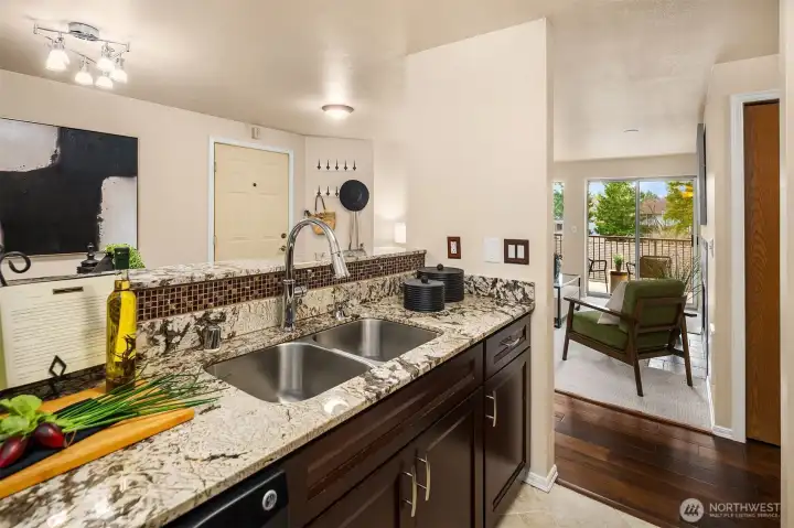 Luxuriously appointed with high-end designer upgrades, you'll fall in love with this turnkey corner-unit jewel box in the heart of Newcastle! Modern finishes with timeless style featuring hand-scraped hardwoods, lavish new patterned carpets, custom tile floors, updated lighting & fresh paint throughout. Spacious open floor plan brilliantly oriented with minimal shared walls for maximum privacy. Living room with stunning wood-burning fireplace & wall of windows opens to huge covered balcony with territorial views & storage unit. Formal dining opens to breathtaking kitchen with rich solid wood cabinetry, dazzling slab granite, full-height glass tile backsplash & stainless steel appliances. Grand primary suite with large walk-in closet. Spectacular spa-like bath with dual sinks. Full-size in-unit laundry. Low HOA Dues + exterior improvements coming soon to further enhance curb appeal, ensure longevity & strengthen future equity gains - paint, windows, railings & more (all paid by Seller in-full). Clubhouse with fitness center & sports court. PRIVATE GARAGE, ample guest parking + bonus storage unit. Ideal in-town location with shops, dining & parks at your doorstep!