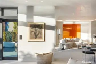Design, detail and execution without equal. This exceptional One Carillon Point condominium presents a modern, sleek and sumptuous palette perfectly situated on the shores of Lake Washington. This stunning home is the result of a three year collaboration between architect Christian Grevstad and Schultz Millers talented craftsman showcasing an unmatched integration of stone, steel, venetian plaster and wood. One large primary bedroom suite with private garden patio, multiple living, dining and entertaining spaces plus flex room suitable for overnight guests. Additional architectural renderings are available to enclose one of the flex spaces to create a larger dedicated office or guest space if desired. The great room, office alcove, kitchen and entertaining spaces open to stunning waters edge views of Lake Washington and the Olympic Mountains. Enjoy the lake views from one of two private patios offset by multiple reflecting pools, seating area and outdoor gas fireplace. Secure and private in Kirklands premiere concrete and steel building next to One Carillon Point amenities and Kirklands Houghton Beach Park. Two secure parking spaces plus separate secure storage closet. Without Equal and must be seen to fully appreciate the attention to detail.