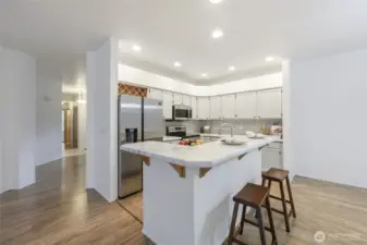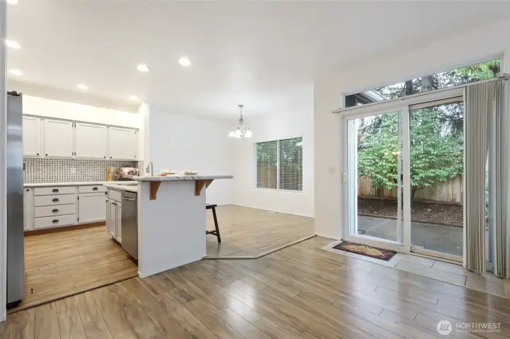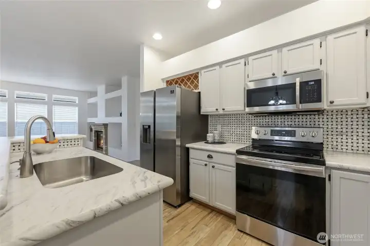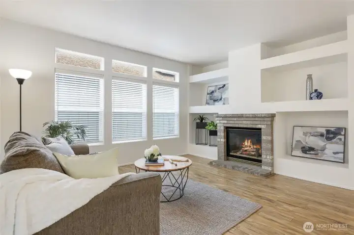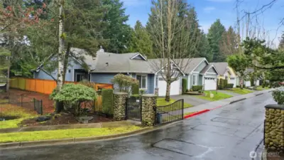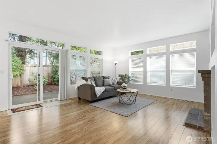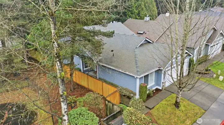 Sweet, inviting 2 bed/2 bath home in hard-to-find gated community offering privacy and convenience. High ceilings/ample windows create light, spacious feel throughout. Updated kitchen open to living room and casual dining area, with adjacent space ideal for formal dining or flexible use. Living room features cozy gas log fireplace with built-in shelving and sliding glass door access to fully fenced backyard patio - perfect for relaxing/entertaining. Exterior updates completed in 2020, including new roof, gutters w/leaf guards, fresh exterior paint. New window blinds throughout. Well maintained and truly turnkey, all appliances included. Enjoy easy, low-maintenance living close to shopping, dining, city amenities; front yd maintained by HOA