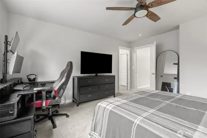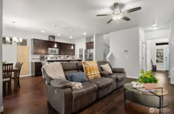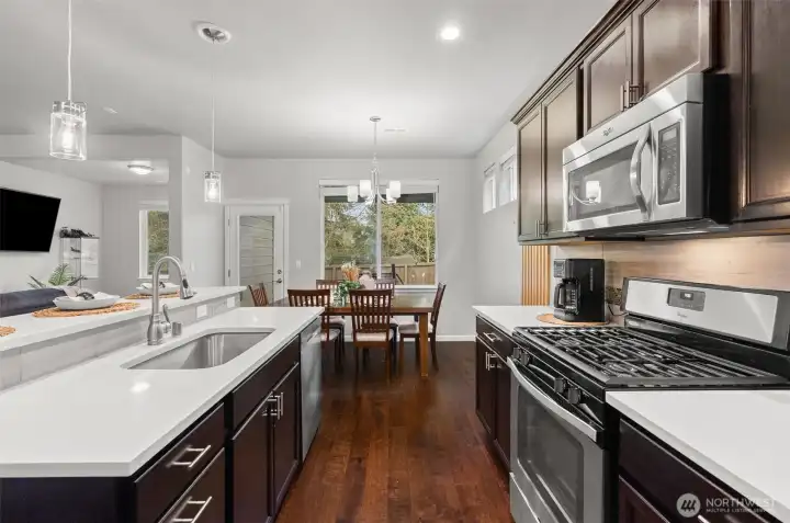 Beautiful home in the desirable Freestone at Bayside community! Premium lot with the greenbelt in the back, this home features almost 2,000 square feet of chic, stylish and convenient. Open concept living features open living room, dining room, and den that can be used for media room or office. Kitchen is the perfect size for entertaining guests or just everyday living, with SS appliances, grand, wood cabinetry, and walk-in pantry. Upstairs offers three bedrooms, plus sizable loft to create the perfect hangout room! Primary Suite with luxurious, 5 piece attached bathroom, complete with soaking tub and dual vanity. Relax on your covered back porch, overlooking the fully fenced backyard with picturesque views of the beauty of the PNW. Adorable neighborhood with sidewalks and parks!