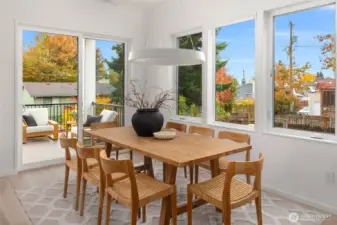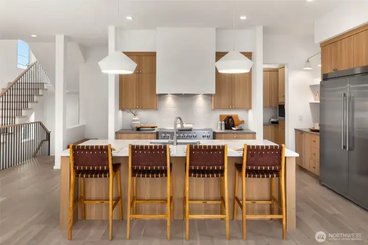 Experience elevated Pacific Northwest living in this Thomas James Homes design by McCullough Architects. This thoughtfully crafted new construction features a flexible floor plan with a lower-level ADU and kitchenette, perfect for guests or rental income. The main level offers open-concept living, dining, and kitchen spaces plus a bedroom and covered deck. The alley-loaded garage accommodates recreational vehicles, while the two-car garage and large driveway offer additional parking. Upstairs features a spacious primary suite, loft, and two addl bedrooms. Located in prime Loyal Heights near parks, top schools, and shops, this home blends modern design with everyday convenience. Bright windows create an inviting, light-filled atmosphere.