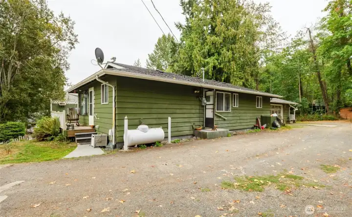 Unique Multi-Family Property in Port Angeles! This single-family home, including its detached garage, was efficiently renovated and converted into three separate rentable units. Perfect for investors or multi-generational living. Main house, with cozy fireplace and enclosed outdoor patio, has an attached apartment with private rear entry. The first unit, located in the front portion of the main house, has 1 bedroom, 1 full bath, kitchen w/ eating space, living room, washer + dryer. Second unit, in the rear portion of the main house, has 2 bedrooms + 3/4 bath, one bedroom having been converted into the kitchen area complete with range/oven, fridge and full-sized sink. Third unit is the detached garage conversion, complete with kitchenette and 3/4 bath boasting a beautiful mosaic river-rock shower and live-edge kitchen countertop. Generating approximately $3400/month in rental income. Apartment & garage studio access a shared washer/dryer on covered back patio. Don't miss this high-yield opportunity!