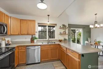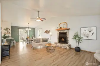 Rambler just outside of Belfair on large .82 acre lot! 3 bed, 2 bath, and 1350sqft. Bright open concept living room with vaulted ceiling and cozy fireplace with stone surround. Laminate flooring throughout the home. Kitchen has a large eat-up counter. Spacious primary bedroom has an en-suite bathroom, walk-in closet, and private door to the back patio. Great storage inside and out. Large back patio great for entertaining. Lots of space to garden. Chicken coop is included. The lot is partially fenced and has a small detached shop in addition to oversized 2 car garage. RV parking. Located on a quiet dead-end street. Minutes from Belfair & Hood Canal recreational activities. Easy commute to Amazon facility & Naval Shipyard.