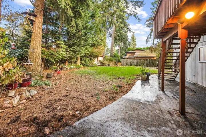 Classic Split Entry home with NO Homeowners Association and convenient RV parking. Home features a 10-year-old composition roof with leaf guard system and fresh interior paint throughout. The kitchen offers ceramic tile floors, laminate countertops, maple cabinetry, and all appliances included! Upstairs hosts 2 bedrooms, plus a living and dining room, while the lower level includes 1 bedroom + office/den—perfect for work or guests. Cozy up in the family room with a wood-burning fireplace. Outside, enjoy a fully fenced backyard with double gate, fruit trees, garden space, wood shed, and front/back sprinkler systems. 2-car garage with workspace completes this well-maintained home! Centrally located near shopping, entertaining and schools!