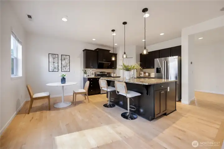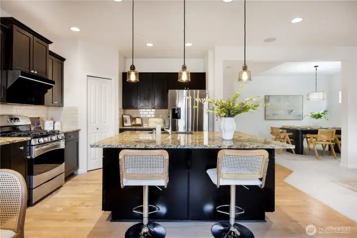 Welcome to this meticulously crafted home by renowned DR Horton on a desirable corner lot in an inviting neighborhood. The chef’s kitchen features stainless steel appliances and slab granite countertops. Spacious living and dining areas, anchored by a gas fireplace, create a warm and comfortable setting for everyday living. Upstairs, the generous primary suite offers built-in speakers, a 5-piece bath, and a large walk-in closet. Sun-filled bonus room adds flexibility and enjoyment to daily life. Three additional bedrooms and a full bath comfortably accommodate household needs. Outside, a beautifully maintained backyard with an updated patio and mature, lush landscaping, thoughtfully cared for over the years. Fully fenced yard with lawn is ideal for dog run and includes a gas hookup ready for BBQ. Joyful neighborhood with sidewalks, parks and playgrounds creates a neat and organized living experience. Minutes to trending Bothell and Kenmore commercial centers. Fresh paint. Has A/C.