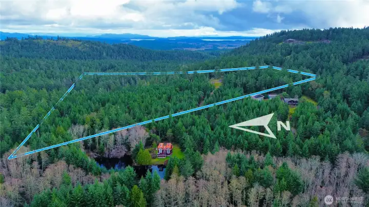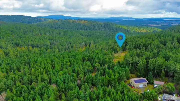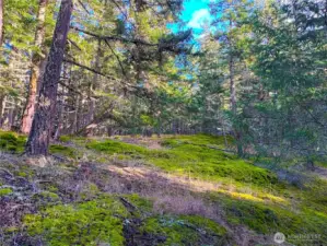 Over 19 acres of beautiful, thoughtfully stewarded land offered as two tax parcels, ideal for a private retreat or multi-home compound. Selective clearing has created excellent building sites that capture sunlight and distant views while maintaining privacy and respect for the land. The entire eastern boundary adjoins the Town of Friday Harbor watershed, offering lasting peace and protected surroundings. The property includes a shared 5 GPM well with storage tanks and separate meters, with water and power already extended to the building area and a restored driveway in place. Moss-covered rocks, towering firs, graceful madrone trees, and a seasonal creek along the western boundary create a serene and magical setting to build your dream home