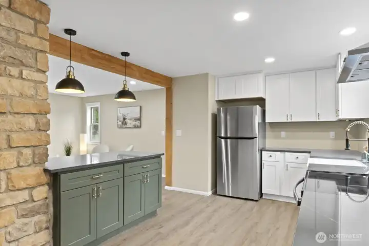 Welcome home to your dream farmhouse, nestled on nearly 10 acres with a detached garage, new roof, RV hook-up, and original barn. Upon entry, you're welcomed into an open living space with a stunning exposed beam that appears throughout the home. The kitchen boasts black quartz countertops with white veining, stainless steel appliances, and the star of the show, a quartz farmhouse sink. Off the kitchen is a large utility room/mudroom with washer and dryer plugs and exterior access to your extended deck. In the primary bedroom, you're greeted by the lovely exposed beam, a large walk-in closet, and a soaking tub/shower with a view of the property. Property is fully fenced and double fenced on the frontage. This property is perfect for your hobby farm or ag tourism. Possible subdivision, buyer to verify. Don't miss out on this rare find.