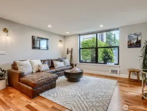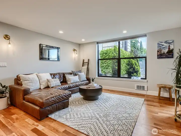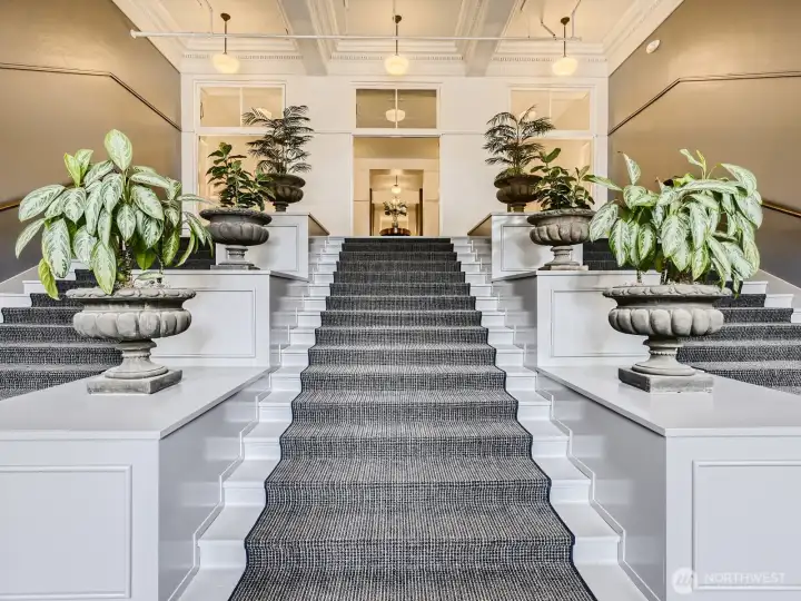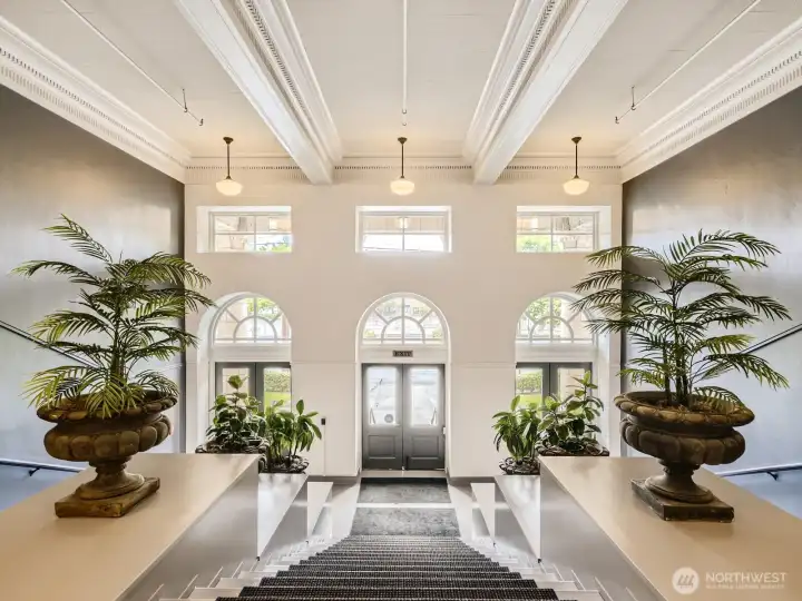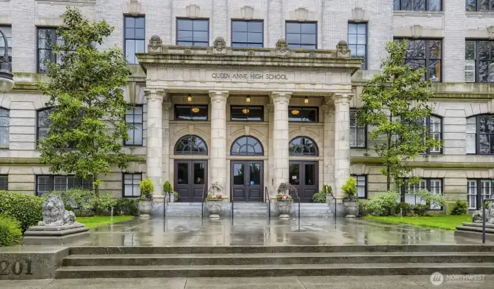Live in a true Seattle landmark at the crest of Queen Anne Hill, where turn-of-the-century craftsmanship meets modern comfort. This rare, level-entry ground-floor corner home offers effortless accessibility, abundant natural light through oversized picture windows, and an open, flexible floor plan. Step out to your own private patio and enjoy the calming sounds of the courtyard fountain—an ideal retreat in the heart of the city. The one-bedroom residence features a large living space with enough room for a home office, hardwood floors, custom California Closets, in-unit washer/dryer hookups, and covered level access to secure dedicated garage parking. The kitchen is both stylish and functional with stainless steel appliances, granite countertops, a farmhouse sink, and generous storage. Secure garage parking, pet-friendly living, bike storage, and no rental cap add exceptional value. Entertain on the iconic rooftop deck with sweeping city, mountain, and water views, or stroll just blocks to Queen Anne’s vibrant shops, dining, and neighborhood amenities. A rare opportunity to own an accessible home in one of Seattle’s most storied buildings.