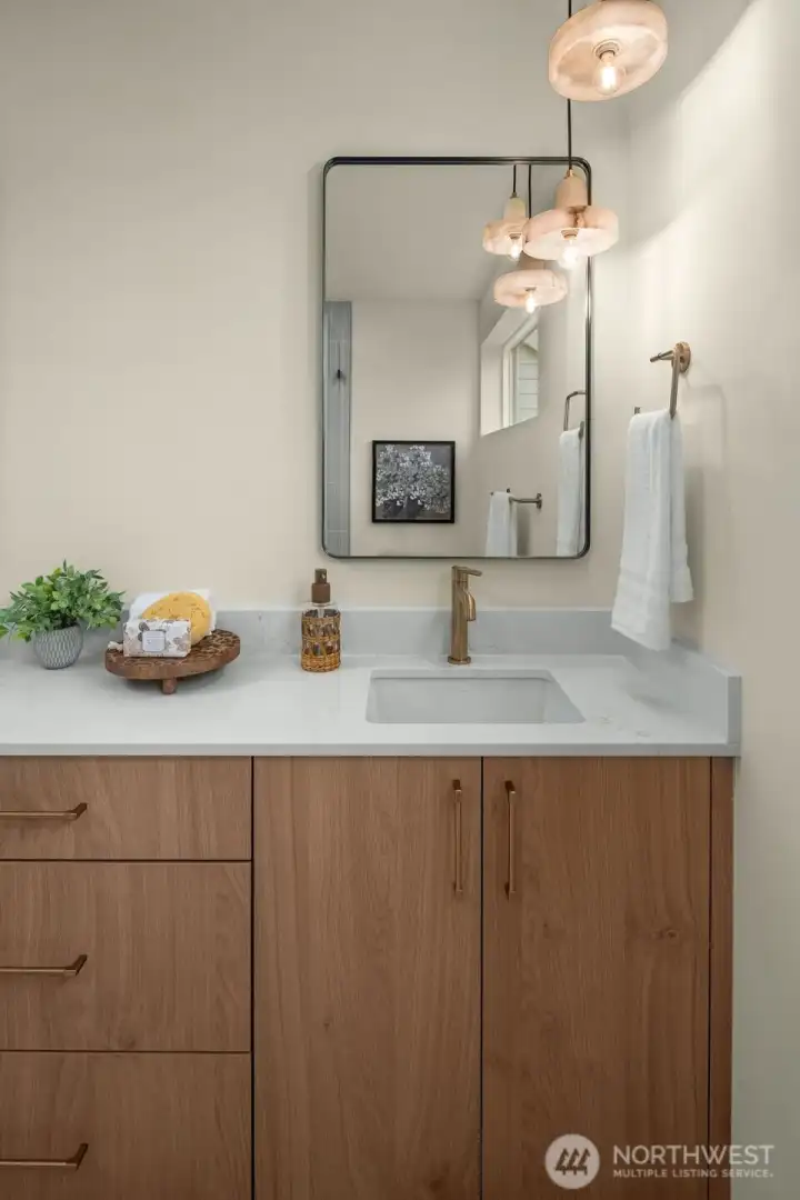 Seller Paid Interest Rates As Low As 1.99% (qualifications apply). Designed for those who value intention over excess, this 1,192-square-foot home lives larger than its footprint—offering a thoughtfully layered layout and a refined sense of calm at every turn. From the moment you enter, the home feels purposeful, private, and beautifully composed. The ground level is anchored by a warm, modern kitchen and dining space—perfect for slow mornings and easy evenings—paired with a convenient powder room and smart storage that keeps life uncluttered. Upstairs, the guest bedrooms enjoy quiet separation with access to a full bath and laundry closet. Also enjoy a second oversized walk-in closet, rarely found in homes of this scale. Natural light pours into the living room through generous windows, creating an airy retreat that feels both open and intimate—ideal for hosting, unwinding, or simply watching the light shift throughout the day. The top floor is reserved entirely for the primary suite: a true sanctuary featuring a full en-suite bath, walk-in closet, and direct access to the rooftop deck. Above it all, the rooftop deck becomes an extension of your living space—morning coffee, evening sunsets, and Views of the Olympic & Cascade Moutains. This is a home that understands modern living: efficient yet elevated, private yet connected, and designed to support the way you actually live. A rare opportunity to own a space that feels intentional, featuring 2-10 warranty for peace of mind