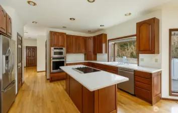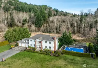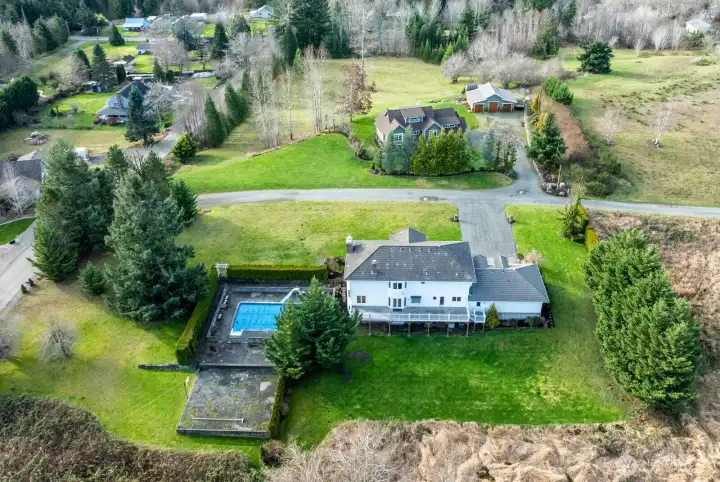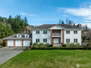 This quality-built home is on the market for only the second time. The home features four bedrooms and three and a half bathrooms, each bedroom is connected to a bathroom and a walk-in closet. The kitchen is equipped with stainless steel appliances and offers ample pantry and storage space. A spacious laundry and utility room adds to the home's functionality. There is a fifth bedroom/ den with a closet located on the main floor. The 1,600 sq ft daylight basement, has a separate entry and is unfinished, presenting a great opportunity for customization—ideal for a home business or additional living quarters. Additional highlights include a three-car garage, a private road with views of Mt. Rainier, Olympics, and Mt Peak, and a inground pool.