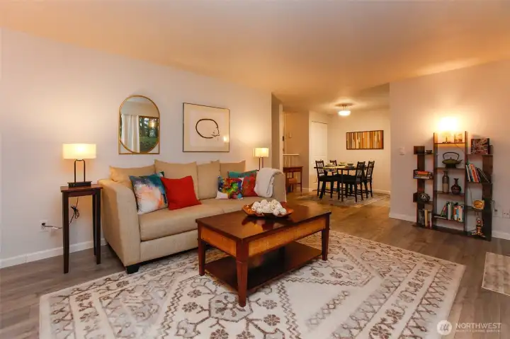 Nestled in the Oakbrook community, this beautifully remodeled, move-in-ready ground-floor 2 bdrm Bluffs condo offers peace, privacy, and stunning year-round forest views of the Chambers Creek greenbelt. Desirable North/South exposure, the open layout features a newer kitchen, updated flooring, fresh paint, and a spacious deck with extra storage—perfect for morning coffee while watching deer roam by. Enjoy the many amenities including a pool, cabanas, tennis and basketball courts, gym, walking trails, dog park, and car wash area, all just minutes from Oakbrook Golf Course and clubhouse. A designated parking space, tranquil setting, and low-maintenance living make this a rare opportunity to own a slice of serenity in Lakewood’s hidden gem.