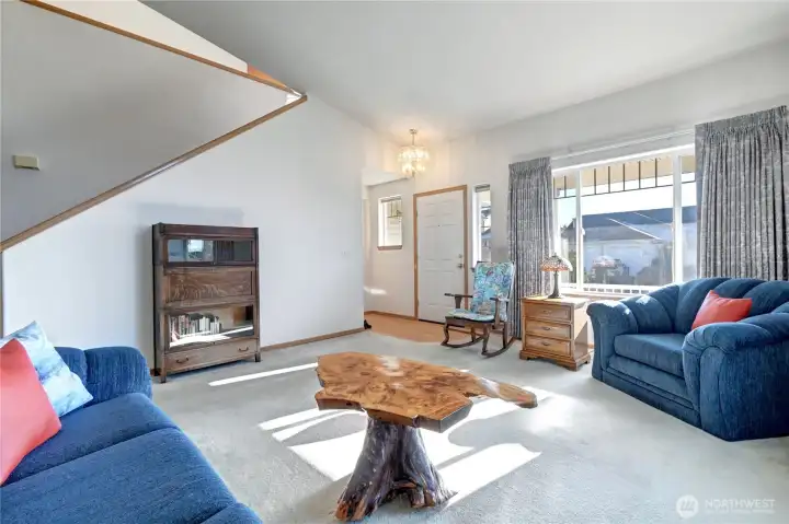 Welcome home to this stunning 3-bedroom, 3-bathroom residence in a desirable neighborhood, offering views of the Sound and the Olympic Mountains. Designed with comfort and style in mind, the home features an open floor plan, living room with sound views and vaulted ceilings that create a light-filled, spacious atmosphere—perfect for both everyday living and entertaining. Enjoy your morning coffee or evening sunsets from the view porch, where sweeping views provides a peaceful retreat year-round. The backyard is generously sized, ideal for relaxing, gardening, or hosting gatherings, while the low-maintenance front yard offers effortless curb appeal. With thoughtful design, views and great location and just steps away from Northpoint east park and Bayview trail. This home offers functionality, and lifestyle in one exceptional package.