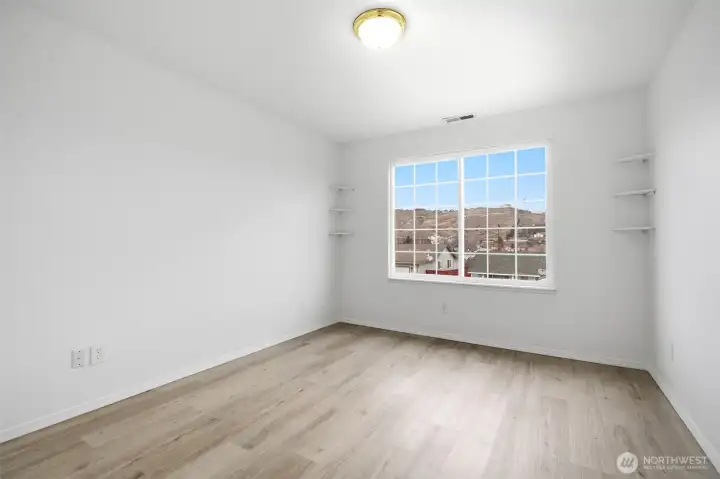 Room, Room, Room. Lots of space. 4 bed, 3 bath, 2 car garage, over 1800 sq ft house. Fenced back yard, room for a dog and garden space. View, view and privacy and walking distance to school., one fire place, gas heat, new appliances, new carpets and new floors, new paint and close to shopping, library and other places. This house has a huge price reduction.
