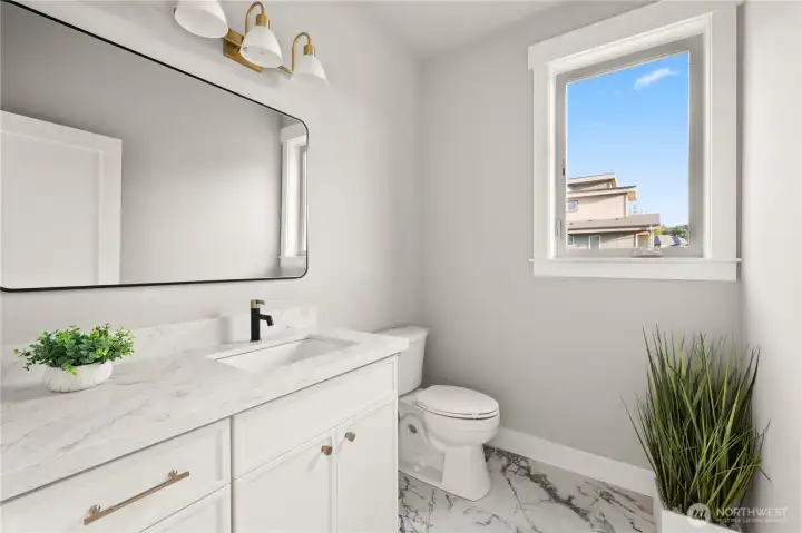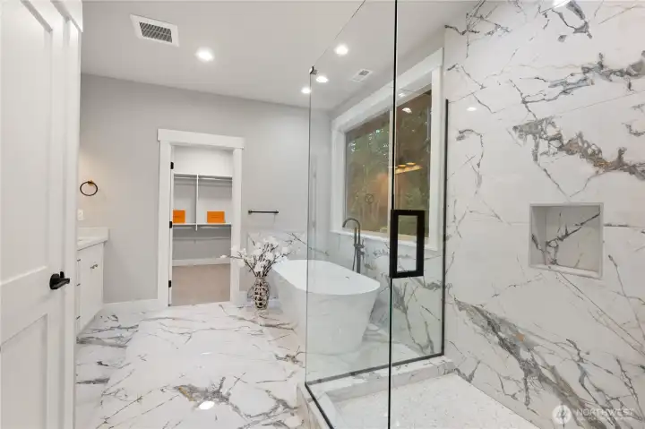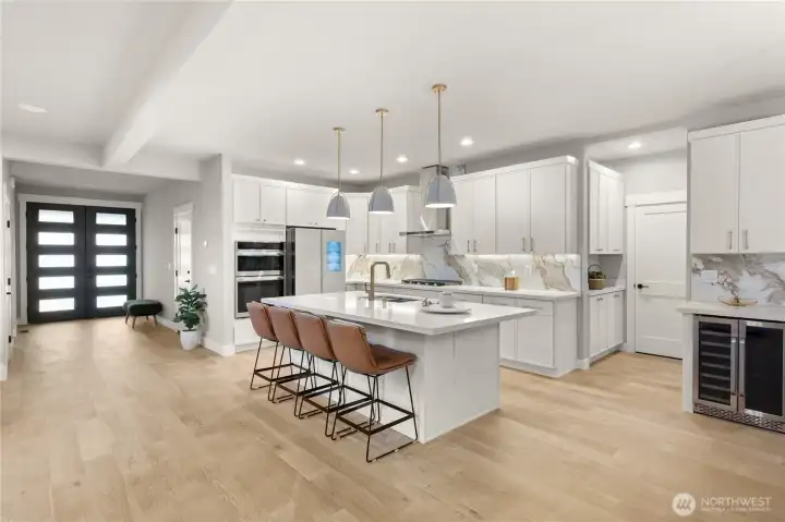 Nestled in private greenery with mountain views,this new build offers a blend of comfort and privacy.Spacious gourmet kitchen features 8-feet island, quartz countertops,elegant accent dining cabinetry with shelving and wine cooler,coffee nook built-in, premium smart appliances, modern lighting and fixtures.The bright great room boasts soaring floor-to-ceiling windows and modern gas fireplace.9 feet ceilings, closet systems and hardwood floors throughout.The luxurious primary suite with huge shower, freestanding tub and spacious walk-in closet.A second HUGE bedroom upstairs boasts office space.3rd bedroom includes walk-in closet and built-in make up table.Enjoy covered deck.Huge leveled lot with so much potential.