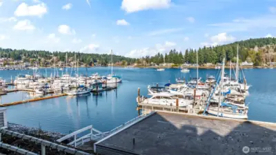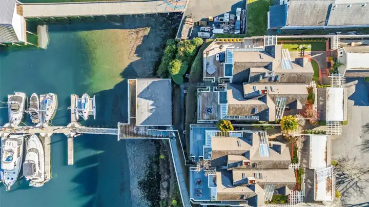 Rare waterfront condo that lives like a private home—front-row Harbor living with unobstructed views of sailboats, sunrise over Mount Rainier, and the sparkle of downtown lights. A private courtyard entry welcomes you, while the spacious waterfront deck is perfect for morning coffee and sunset entertaining. Watch the Kayak Club train, Jr. Sailing skim across the bay, visiting yachts, the gondola passing by, and the historic fishing fleet that defines the Harbor. Live in the hub of waterfront parks, the Cushman Trail, and a vibrant village of restaurants, wine bars, coffee shops, galleries, and boutiques. Enjoy the Farmers Market, Maritime Parade, Blessing of the Fleet, outdoor concerts, and seasonal festivals. Join the sailing community, paddle with neighbors, or stroll the docks greeting friends and visitors. Snowbird-friendly lock-and-go living with the feel of a waterfront home and the ease of condominium ownership. Walk to dinner, meet for live music, or unwind watching herons and seals from your deck. Direct access to onsite marina from private stairs leading from the deck of the home, making it effortless to step aboard and explore the Sound! Waterfront condos of this caliber in the heart of downtown are exceptionally rare and seldom reach the market—an opportunity to live immersed in the Harbor’s beauty and traditions.