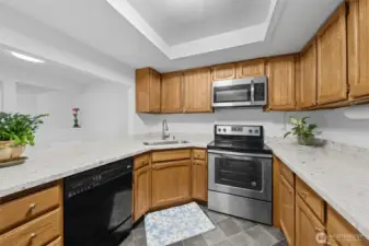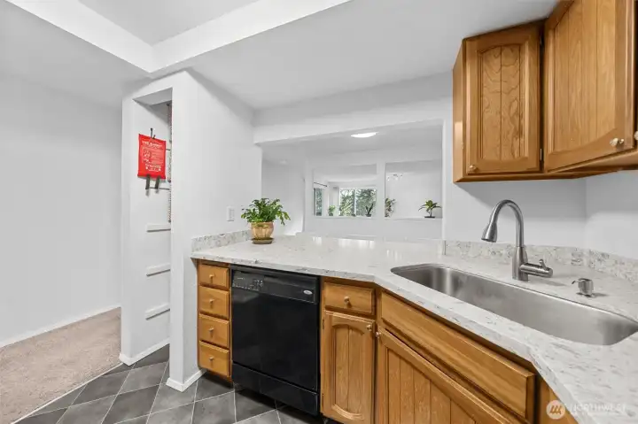This well-maintained 2-bedroom, 1.5-bath condo offers unbeatable convenience just minutes from I-405, top-rated restaurants, grocery stores, and a variety of shopping options. Each bedroom features its own private balcony—perfect for morning coffee or evening relaxation. The sunlit primary suite includes two spacious closets, while the stylish kitchen boasts sleek quartz countertops. Cozy up by the fireplace, enjoy the ease of ensuite laundry, and take advantage of two covered parking spots. With a well-run HOA and a location that puts everything within reach, this home blends comfort, practicality, and lifestyle in one smart package.