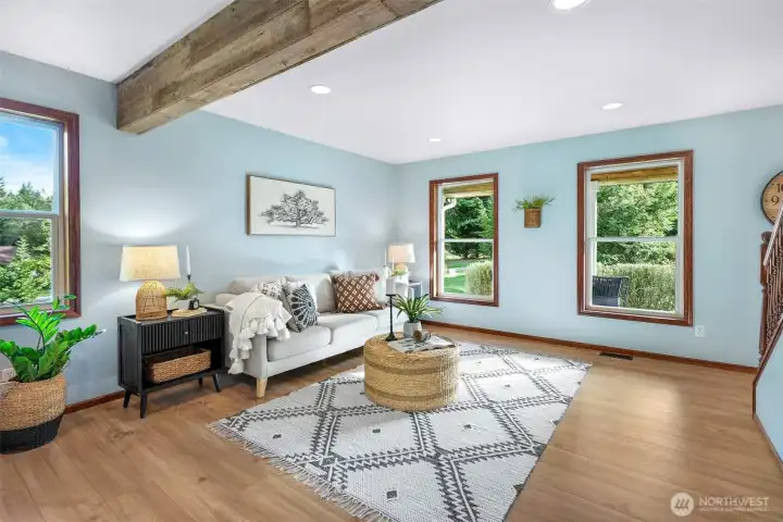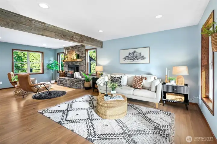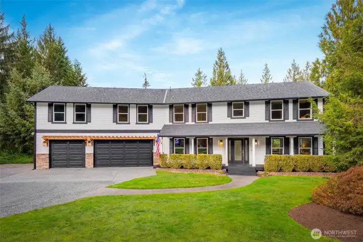 Tucked away near Lake Bosworth, this stunning Snohomish is a retreat! Fresh exterior paint and a new roof create a bright, welcoming first impression. Inside, the light-filled living spaces are designed for everyday comfort & style. The kitchen is a chef’s dream, featuring stamped concrete countertops & SS appliances. Step outside to the expansive back deck for year-round enjoyment, complete w/ an outdoor fireplace; all set on nearly two acres. Upstairs, the oversized primary suite offers a chic ensuite. Three additional bedrooms & hall bath provide space for everyone. Above the three-car garage, an oversized bonus room w/ a bedroom & ¾ bath awaits. Surrounded by lush PNW greenery, lakes, & scenic trails, you’ll enjoy this serene lifestyle!