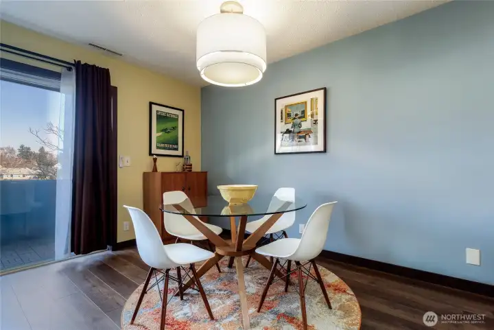 Charming mid-century inspired condo featuring a beautifully updated kitchen and bathroom with timeless style and modern finishes. Enjoy a designated dining area ideal for entertaining and everyday living. Step onto your private balcony—perfect for grilling or relaxing outdoors. Rare in-unit washer and dryer hookups add everyday convenience. Amenities include a community pool, designated parking space, and a private 12x12 basement storage unit. Just blocks from downtown, offering unbeatable access to dining, shopping, and entertainment. Don't miss your chance to own a piece of easy living in this quiet, secluded condo nestled among mature landscaping!