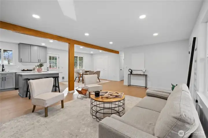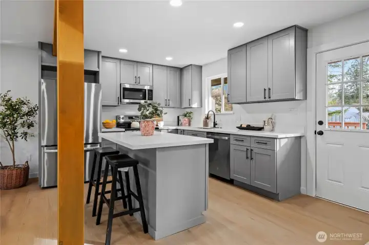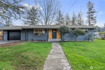 Charming rambler on a quiet, convenient street in the heart of Gold Bar, surrounded by mountains and river nearby! Ideal forever home or perfect starter—no stairs, single-level living. Step inside to a warm, open layout filled with light. Expansive kitchen features new cabinets, Quartz countertops, Stainless Steel appliances, and Luxury Hardware. LVP flooring throughout; fresh interior and exterior paint. Three generous bedrooms and a stylish oversized bathroom with Tile, new vanity, and spacious tub. Energy-efficiency with a tankless water heater and double-pane vinyl windows. Huge, level lot—one of the largest in the neighborhood, offering a lush backyard perfect for entertaining and late-night bonfires. Plenty of parking, RV parking, plus a 1-car garage. Close to Hwy 2, local hikes, and Stevens Pass for skiing and snowboarding. Don’t miss this one.