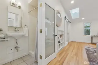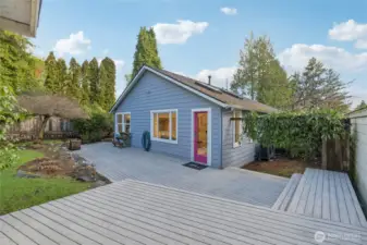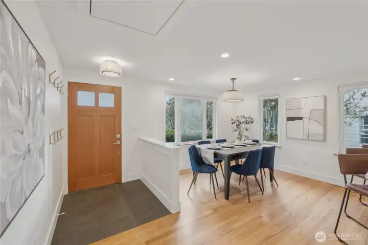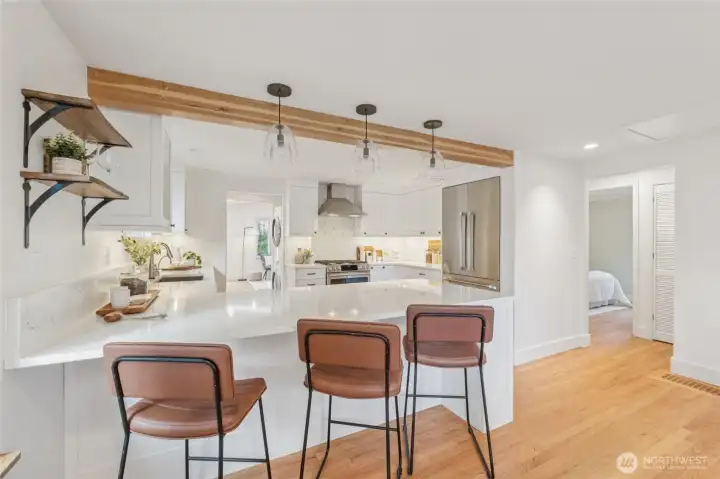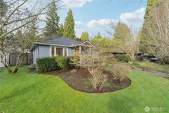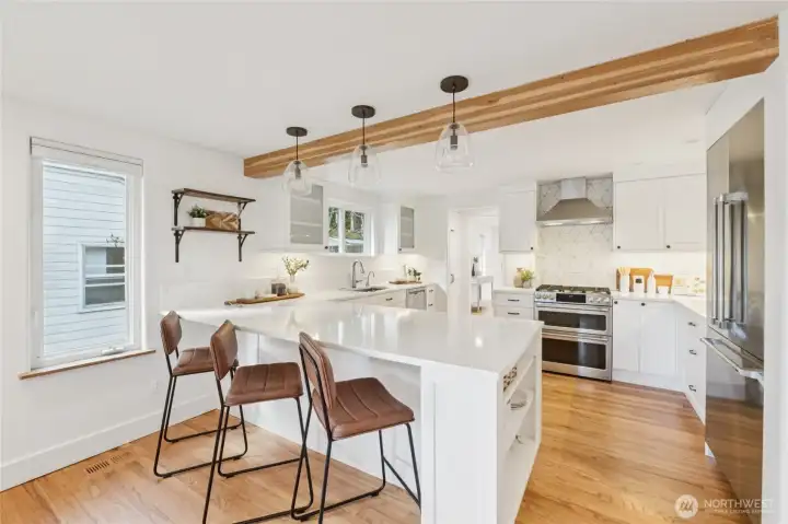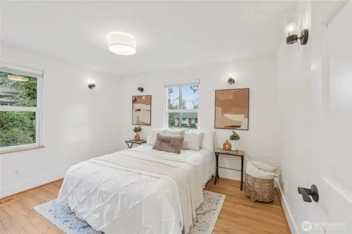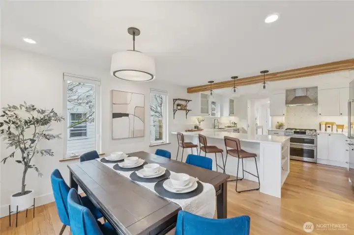 Maple Leaf welcomes you to this charming single-level ranch bungalow. A designer kitchen remodeled in 2019 features stainless steel appliances, chic tile backsplash, and marbled countertops, seamlessly opening to the formal dining room. Enjoy year-round comfort with A/C for warm summer days and skylights that keep the home light and bright, even through winter. The outdoor space truly shines with lush landscaping, a sunny patio perfect for entertaining, and a fully fenced yard complete with an oversized shed - plus a fun personal rock-climbing wall. Ideally located with easy access to I-5 for commuters, close proximity to Northgate Station shopping and transit, and just one block from Sacajawea Elementary. ***Mortgage savings may be available for buyers of this listing.***