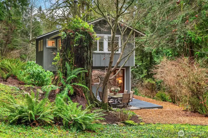 Welcome to your own slice of paradise, where “Cabin Masters Rustic” meets iconic “Martha Stewart Modern”, and every antique craftsman window gifts views of the surrounding woods beyond, treehouse style! This enchanting 3-bedroom, 1.75-bath cottage is truly inspired by nature and sits on 2.5 private acres near Lake Margaret. The heart of the home shines with a stunning remodeled kitchen featuring stainless steel appliances, custom tile, an oversized island, built-in dining nook, and a generous walk-in pantry—perfect for gathering, cooking, and creating lasting memories. The expansive back deck is ideal for entertaining under the stars, while the detached studio/office (not in sq ft) offers endless possibilities: home office, creative space, guest suite, or hobby haven. Updated and truly move-in ready, this idyllic retreat blends cozy cottage charm with modern convenience and unbeatable privacy, yet only 10 minutes to all amenities. Magical!