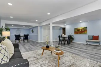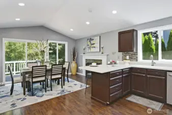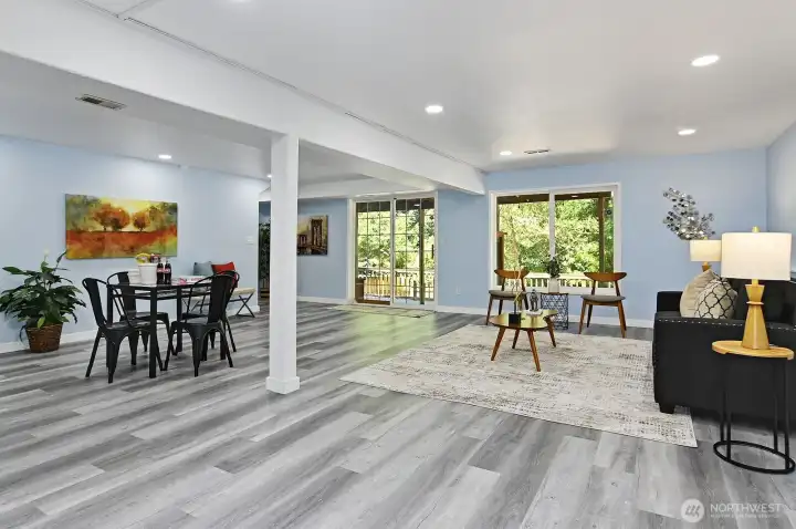 Spacious one-story with basement on private 10,783 sqft lot awaits. Updated and move-in-ready home features large primary suite with ¾ bath. Light and bright living room has abundance of windows and vaulted ceilings. Ample kitchen with breakfast counters and newer SS appliances. Flex dining/family room with gas fireplace. Slider leads to expansive deck overlooking greenbelt. Huge daylight lower-level beckons your imagination - ADU conversion is a conspicuous possibility. Outdoors you will find a fully fenced yard, extensive patio and paved outdoor space, garden shed and mature landscaping. 2-car garage and off-street/RV parking. Notable features include mini-split air conditioning/heating, EV ready, double-pane vinyl windows and more.
